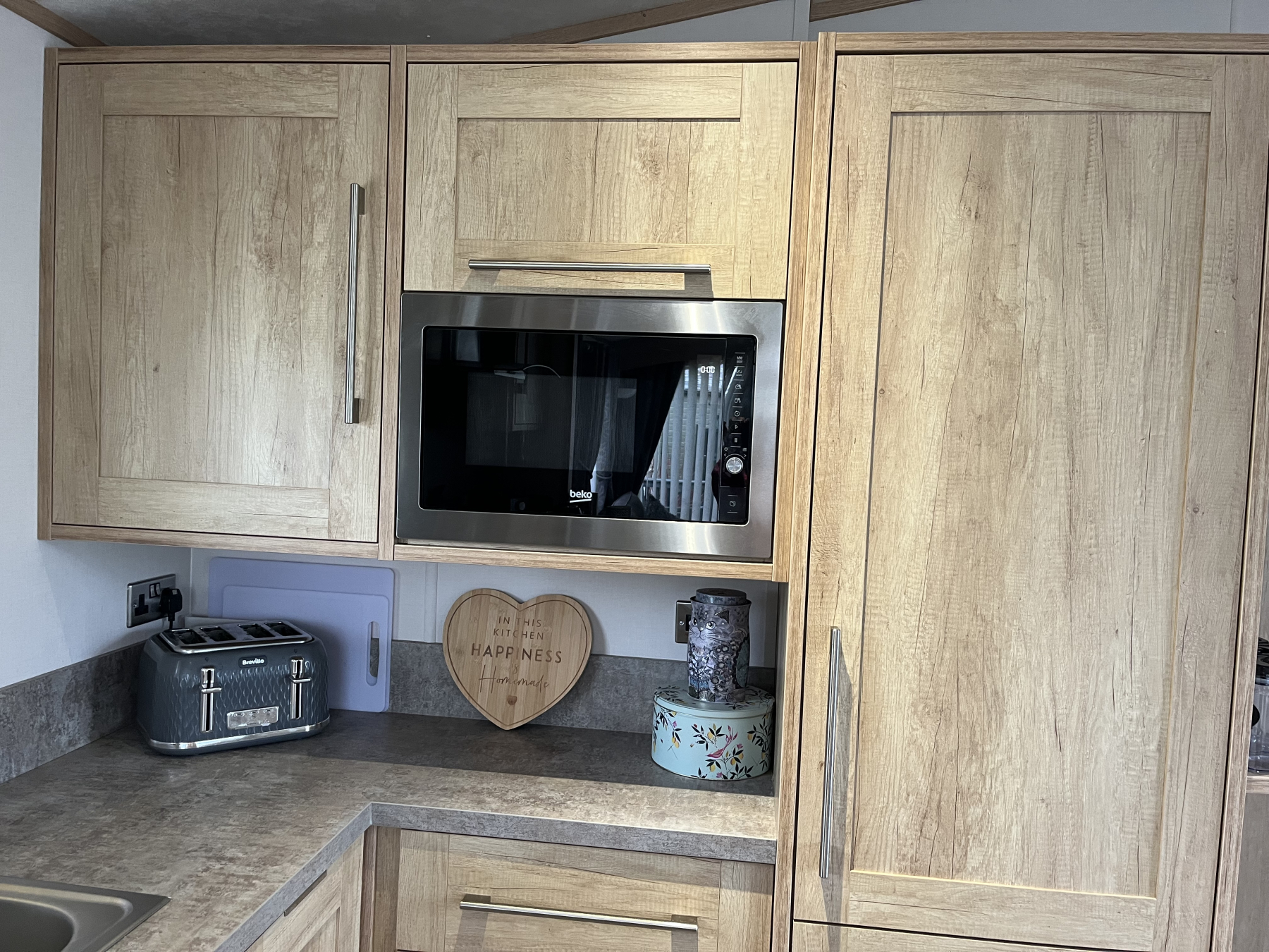 Fully equipped kitchen including oven and grill, extractor fan, integrated fridge freezer, dishwasher, microwave and washer-dryer, also to include matching Breville kettle and toaster, De’Longhi coffee machine ,all crockery, cutlery, glasses and kitchen utensils.