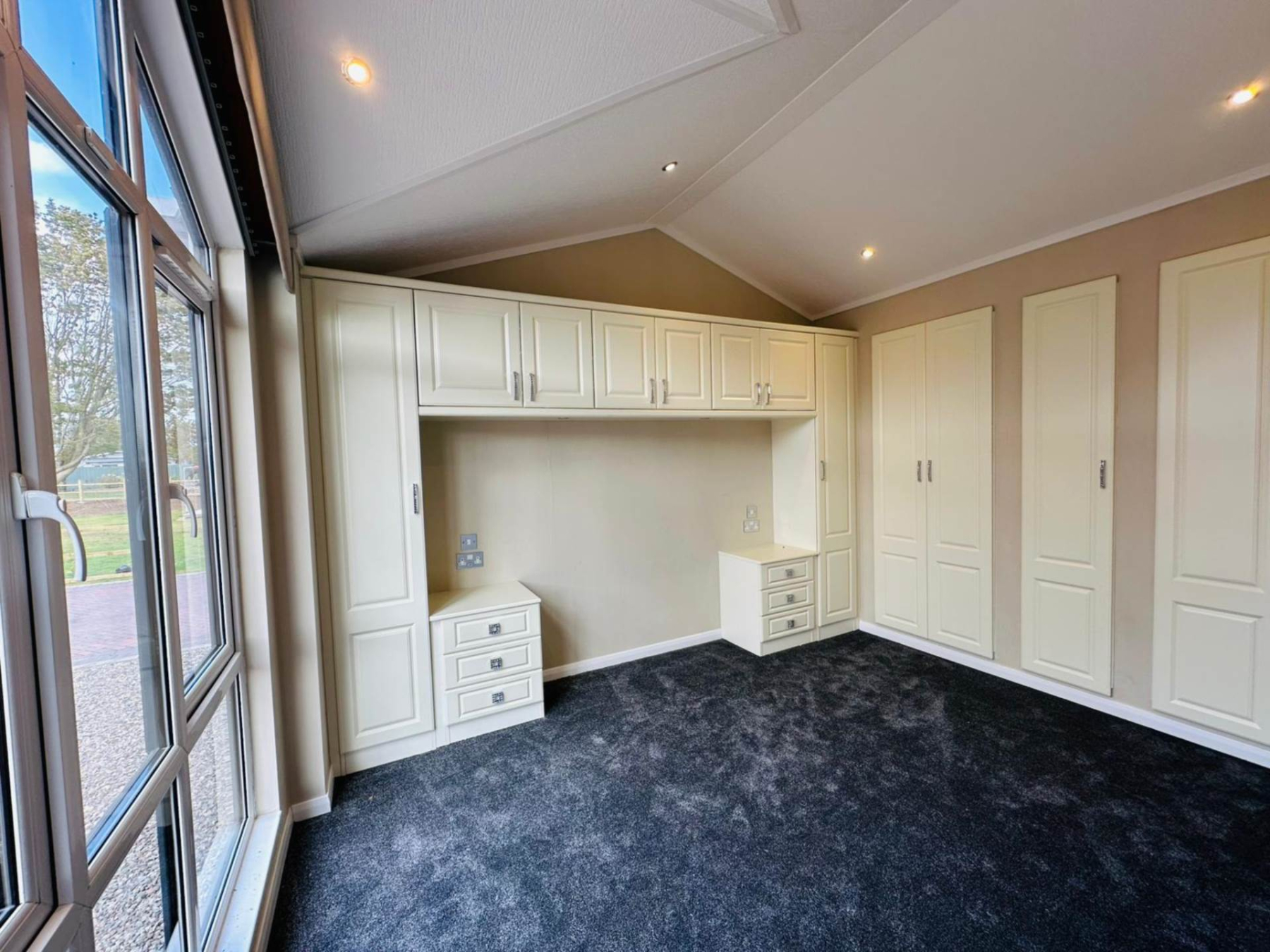 The Stately Albion Mayfair (50 × 14 ft) delivers refined living in a beautifully designed lodge. It's built to residential standards, offers a private driveway and a neat bark-chipped garden for low upkeep making it the ideal choice for those seeking a comfortable, stylish, and stress-free countryside holiday retreat.