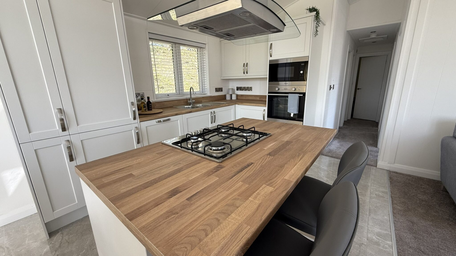 Discover the exquisite Hawthorne Blackthorn, designed for ultimate comfort and style. This modern retreat boasts a superb open-plan living area, seamlessly blending a spacious lounge with ample seating, a dining area, and a fully equipped kitchen featuring integrated appliances including an oven, hob, fridge-freezer, microwave, dishwasher, and washing machine. Furthermore, the master suite offers a double bed, freestanding wardrobes, and a luxurious en-suite with a walk-in shower. Also, the two additional bedrooms provide versatile sleeping arrangements with twin beds and bunks, all benefiting from high-quality mattresses and generous storage. Outside is complemented by a spacious exterior decking area perfect for outdoor relaxation.
