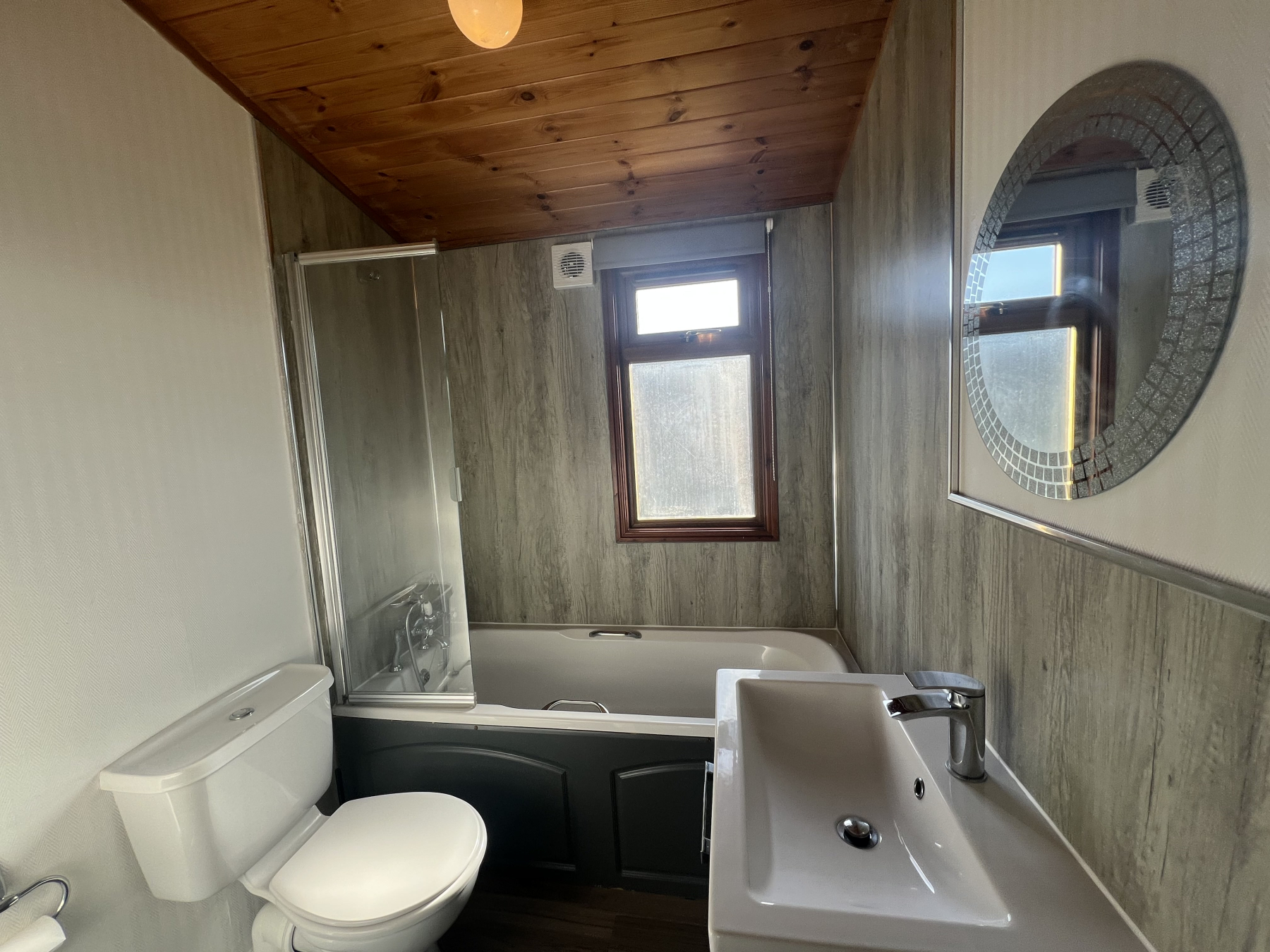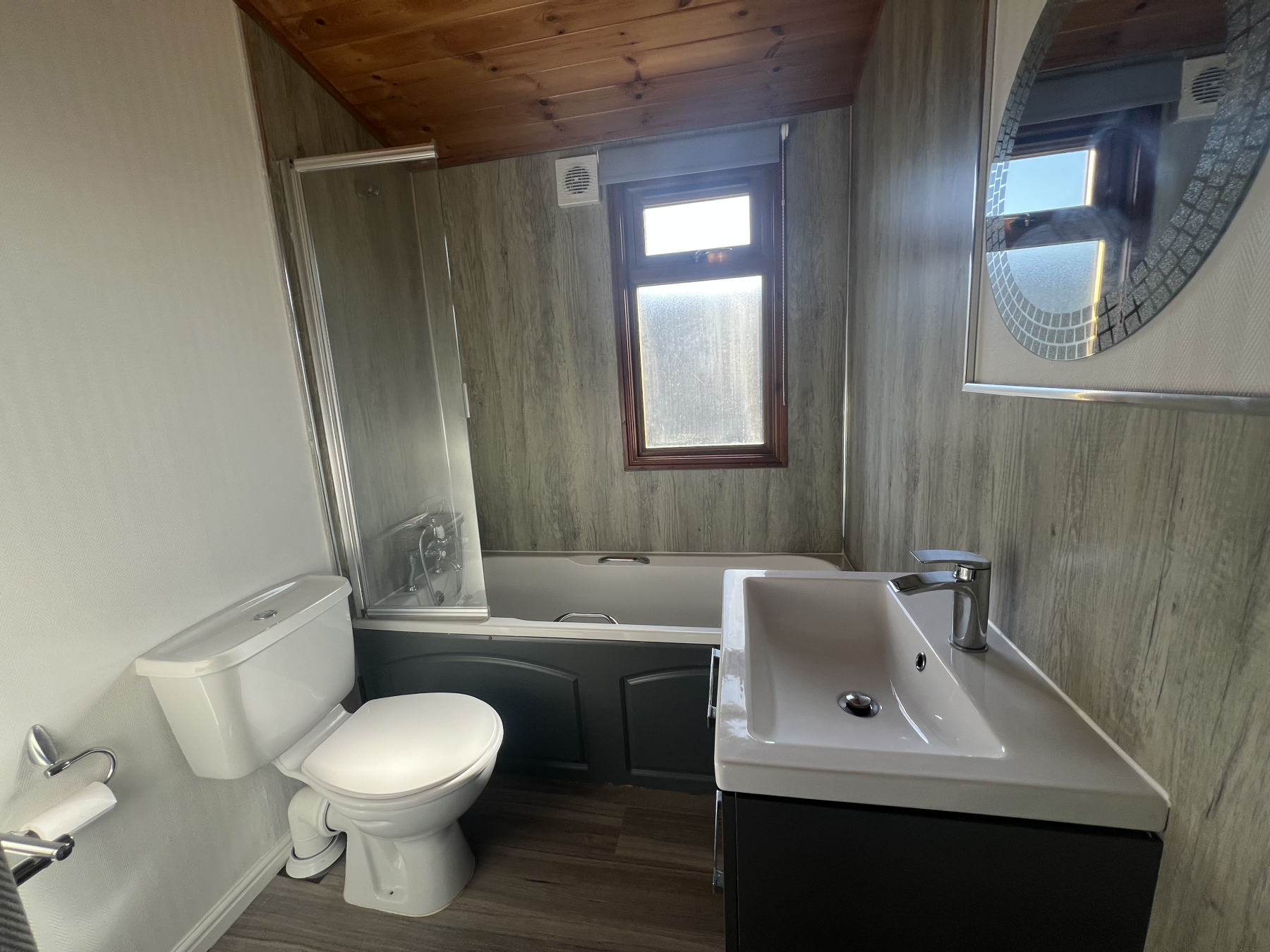 A large family bathroom, complete with bath and over bath shower is luxurious as well as being very practical.