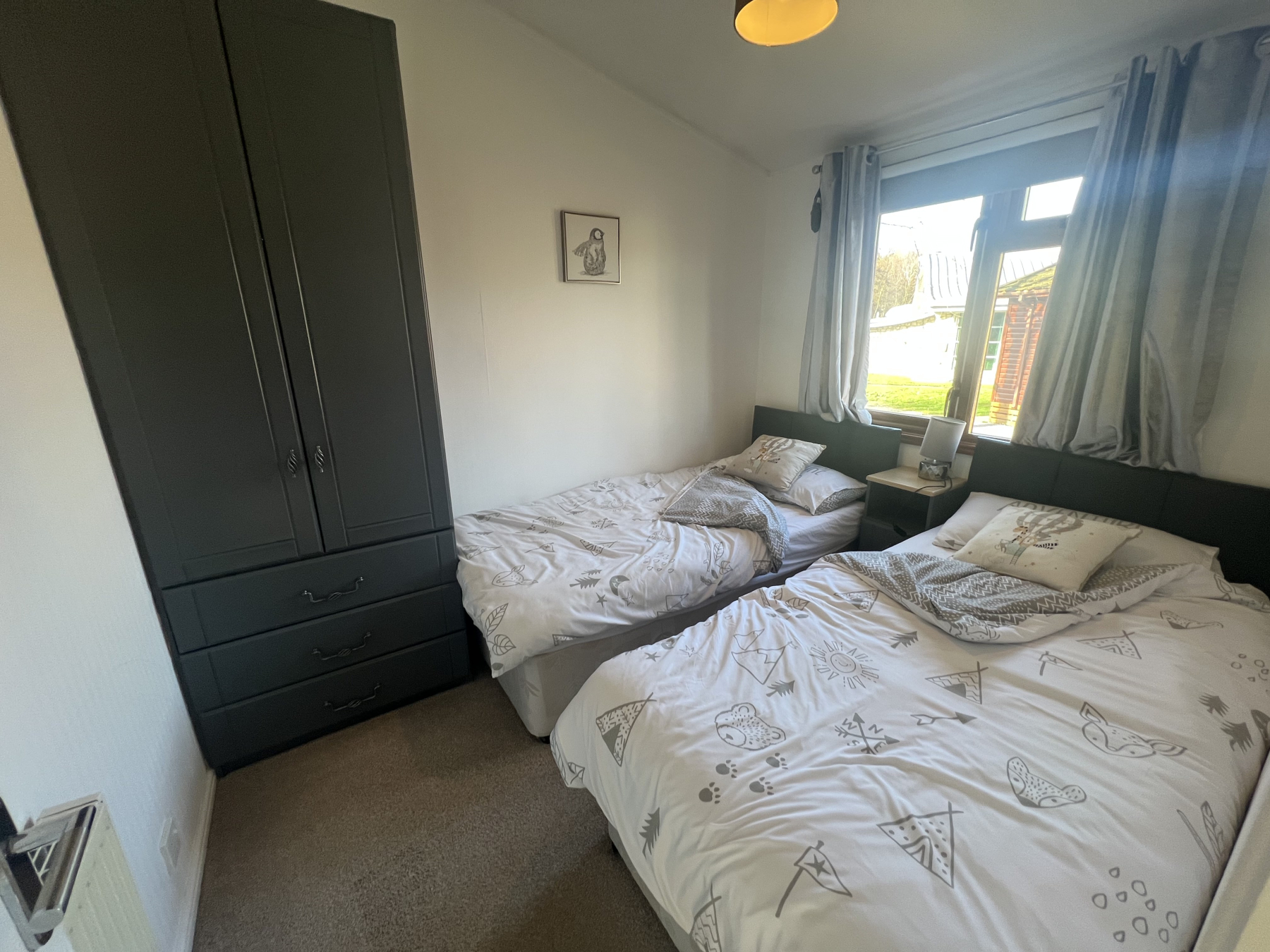 Two additional well-appointed bedrooms (one twin and one double) ensure ample space for family and guests, all finished with plush coordinated soft furnishings and wardrobes.