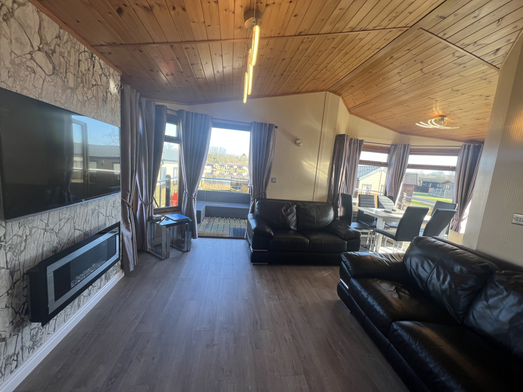 Lakeside 27, a huge 38x40 Omar Kingfisher timber lodge is a masterpiece of leisure home design, and offers a spacious three-bedroom layout that perfectly balances traditional charm with contemporary elegance.