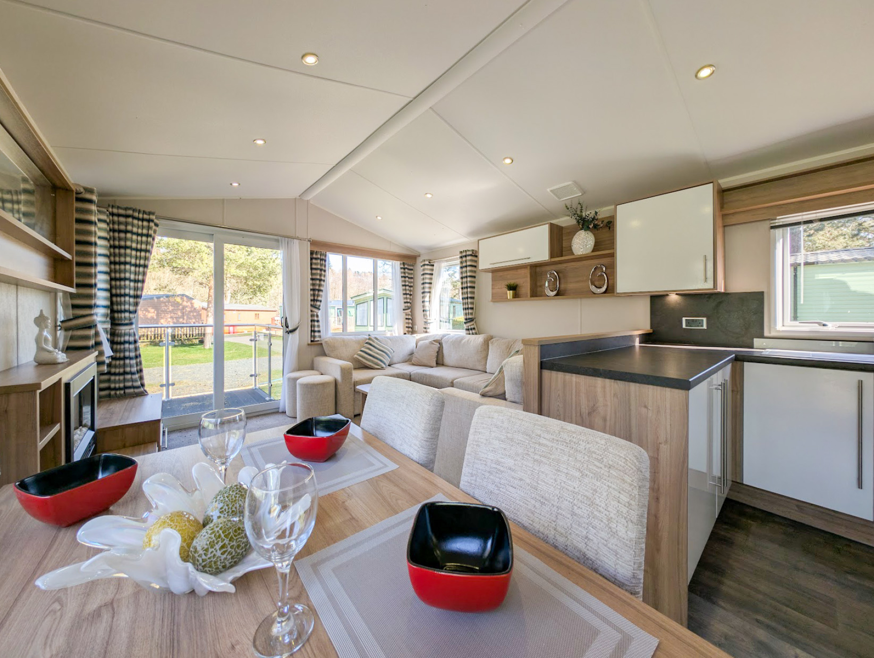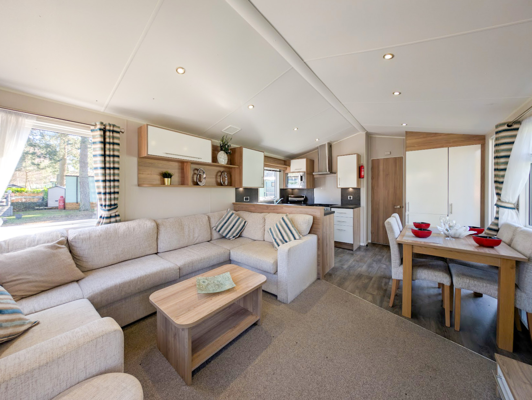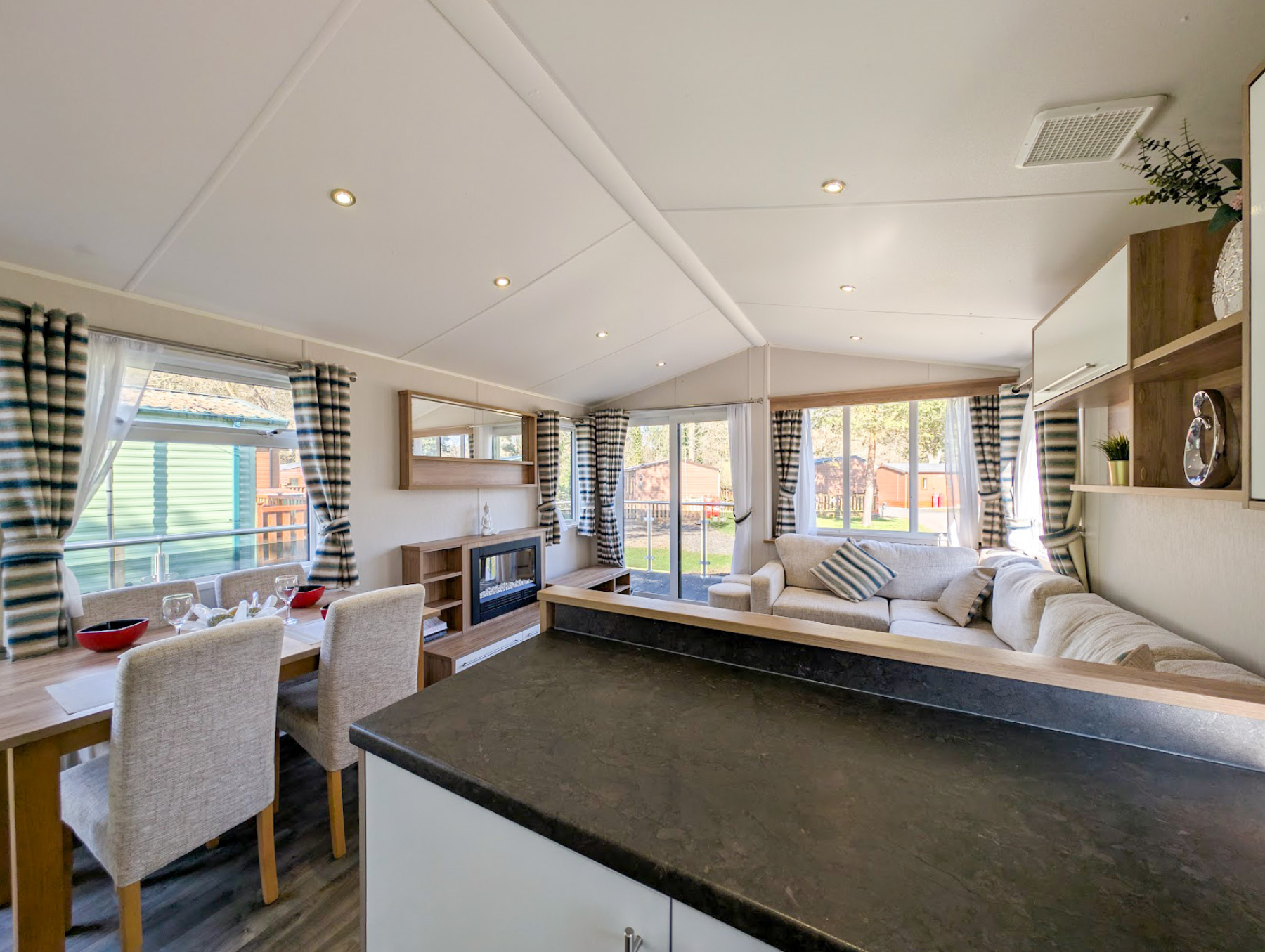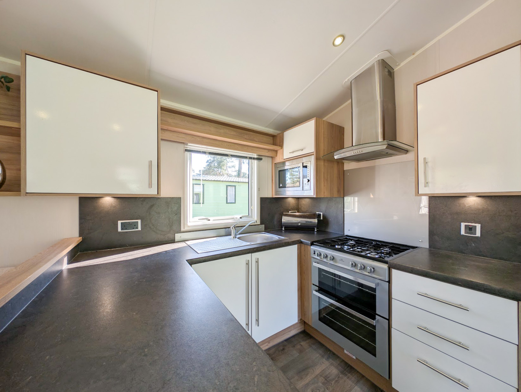 The Willerby Granada offers an exceptional holiday home experience, blending rustic charm with contemporary elegance. Designed with modern open-plan living in mind, this exquisite caravan maximizes natural light and stunning views through expansive windows, creating an airy and inviting atmosphere. Inside, you’ll discover high-end integrated appliances in the kitchen, including a washing machine, dishwasher, cooker, and microwave, making everyday living effortless. The Granada provides a cosy yet spacious retreat, perfect for unwinding.