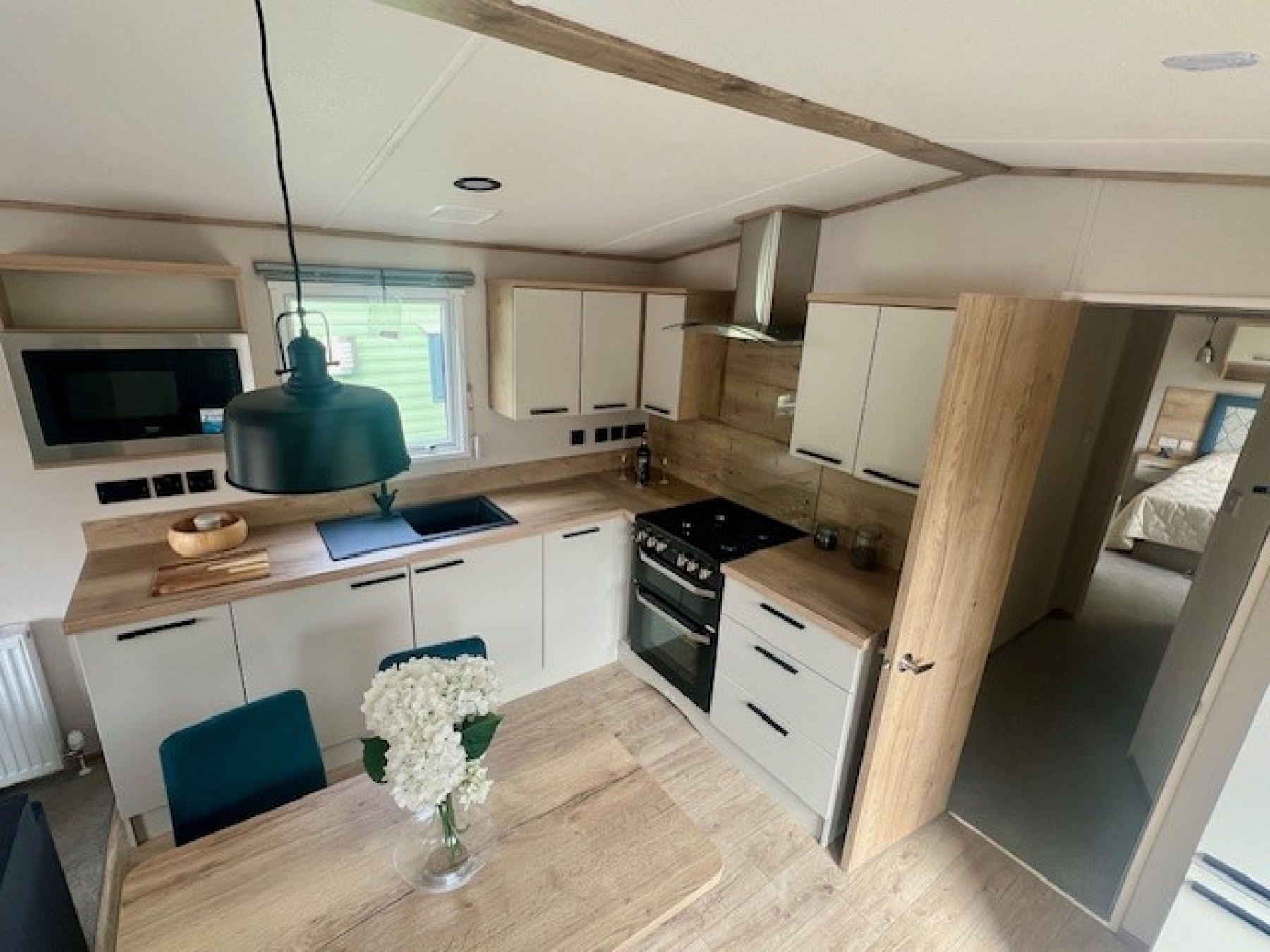 Step into stylish comfort with the stunning ABI Beverly – a beautifully designed 39’ x 12’ Holiday Home that blends contemporary living with all the comforts of home. This two-bedroom model offers a spacious open-plan layout, perfect for relaxing or entertaining, complete with a modern kitchen, integrated appliances, and a bright, airy lounge. The master bedroom features ample storage and a cosy retreat, while the second bedroom is perfect for guests or family. Finished to a high standard throughout, the ABI Beverly is ideal for those seeking a sophisticated yet practical holiday home.