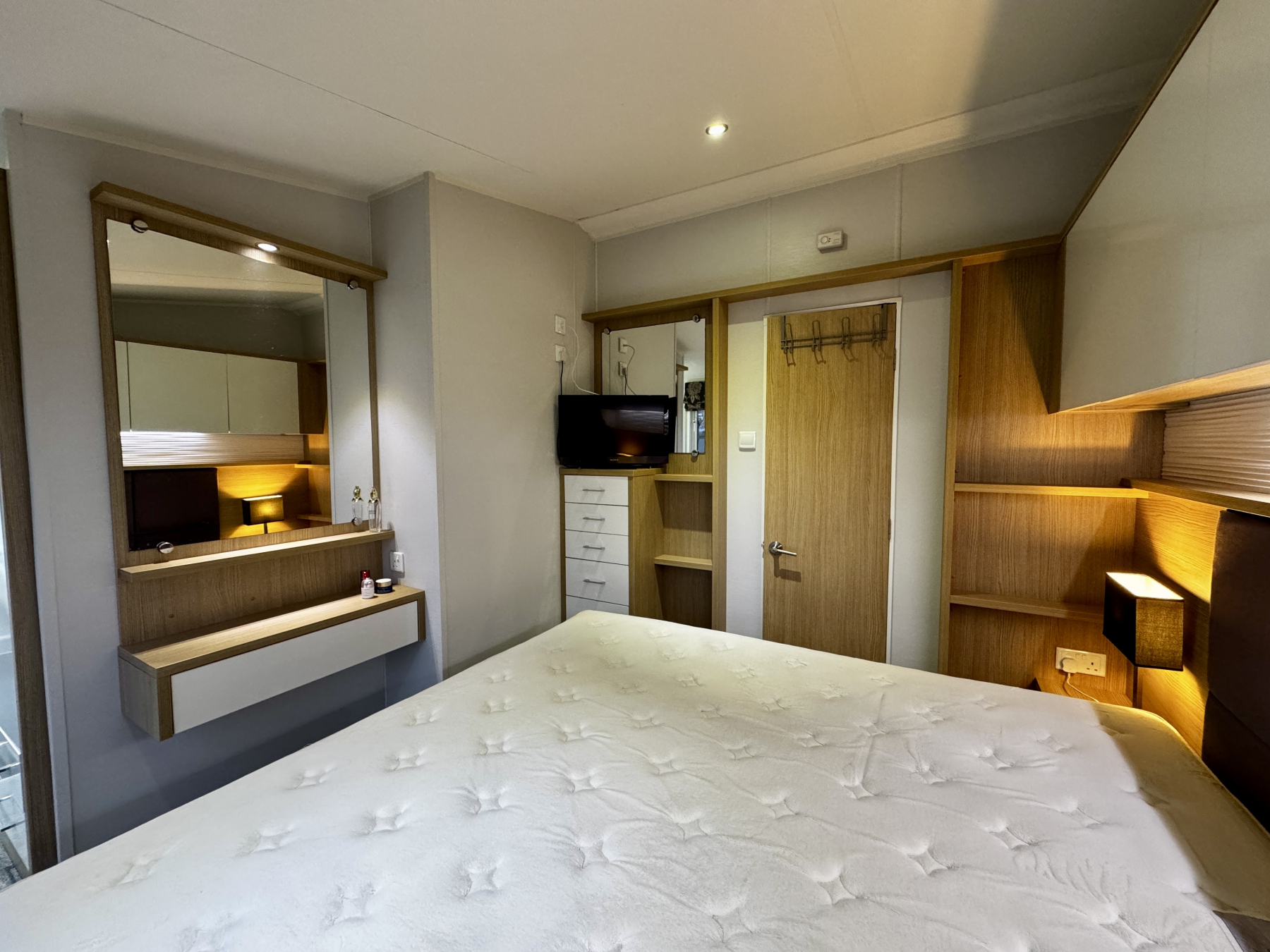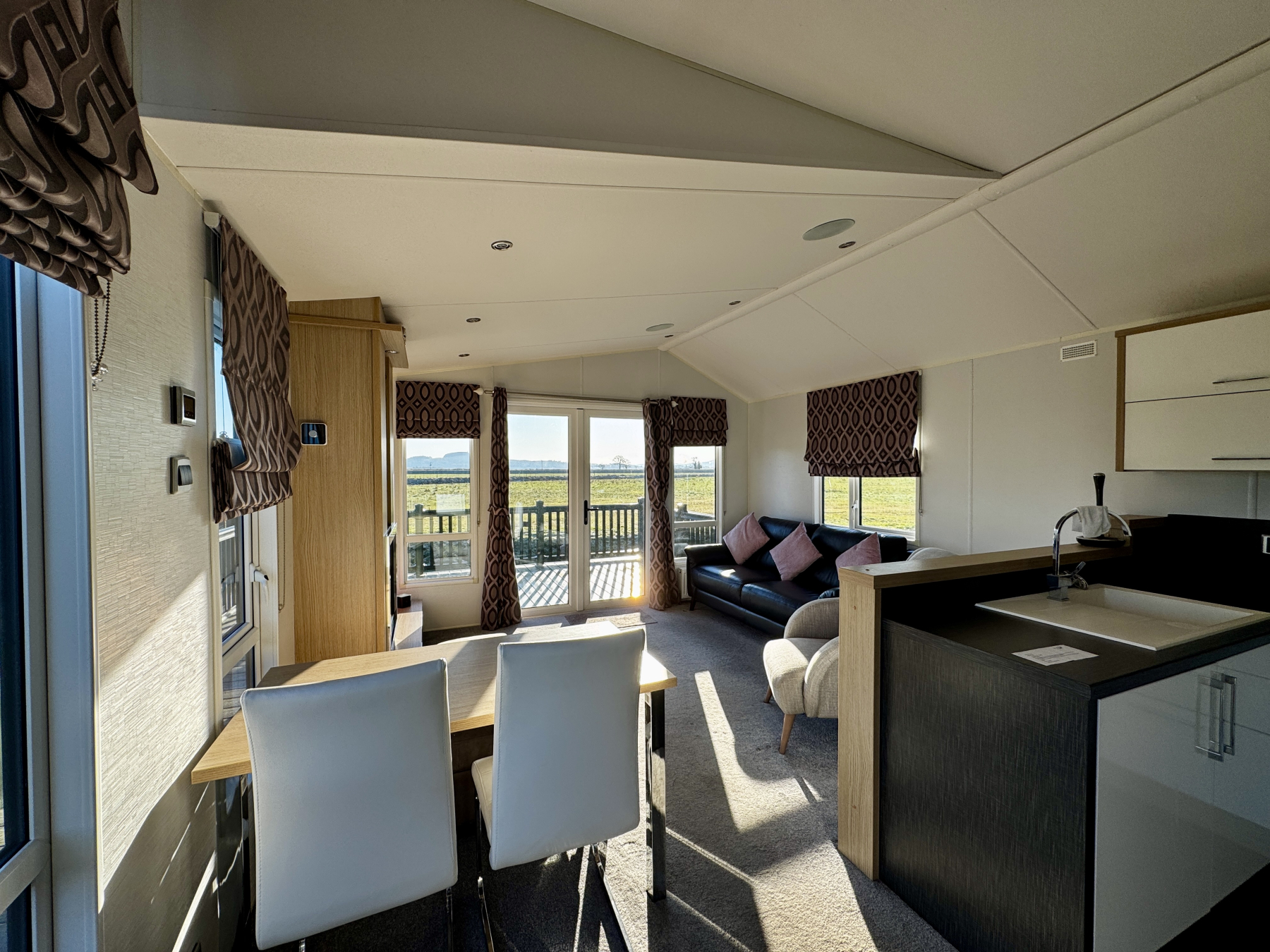This chic and stylish holiday home is perfectly positioned on a rare perimeter end cul-de-sac pitch at Lakesway Holiday Park, offering a quiet and private setting that is not overlooked. As the only available perimeter pitch on the park, it enjoys open views across the countryside, the River Kent and surrounding fells, making it one of the most sought-after locations on the park.
