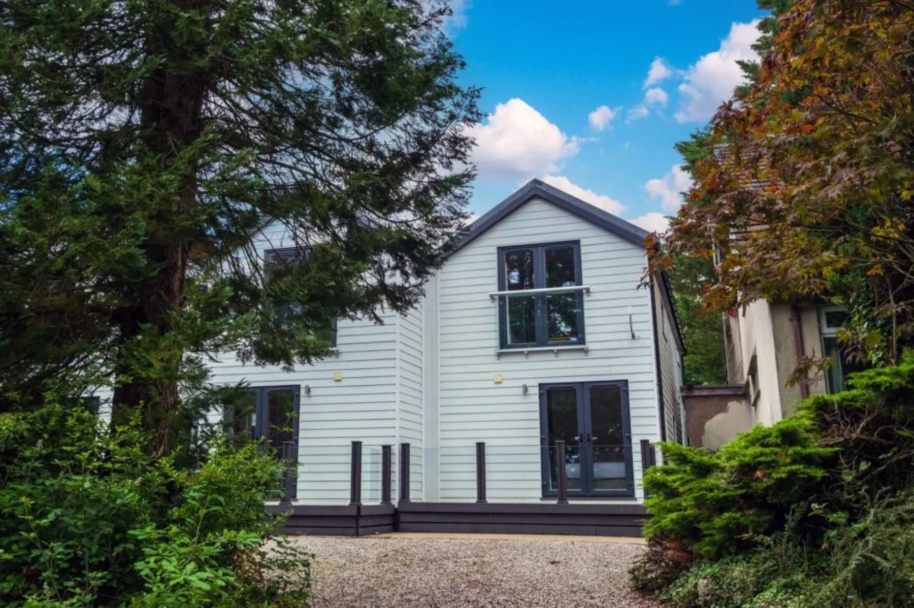 3 bedrooms, 2 bathrooms, an open plan living and a separate kitchen area spread across two floors, with extensive outdoor space.